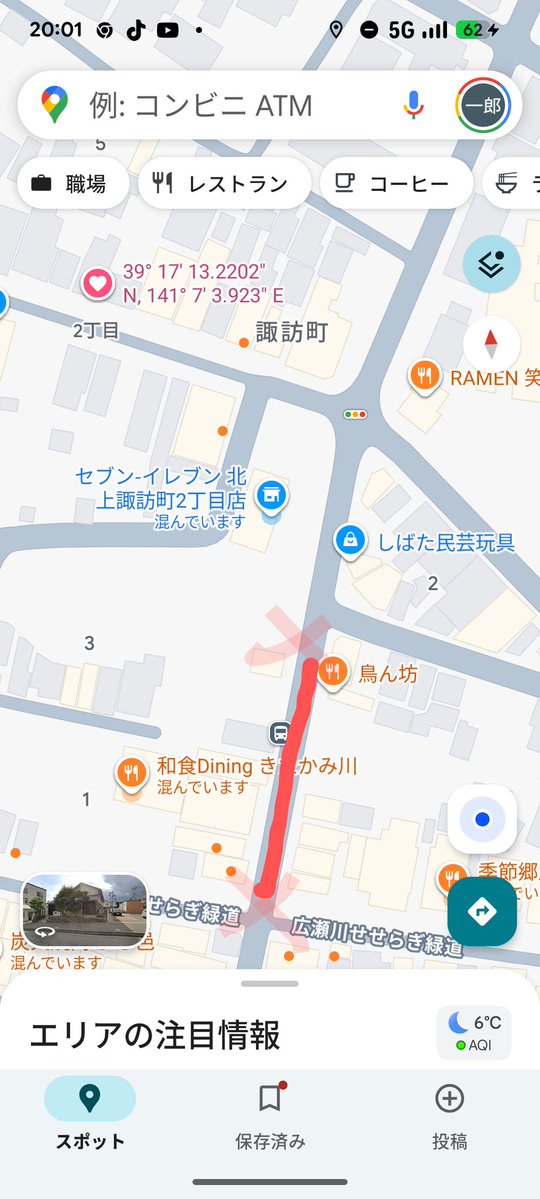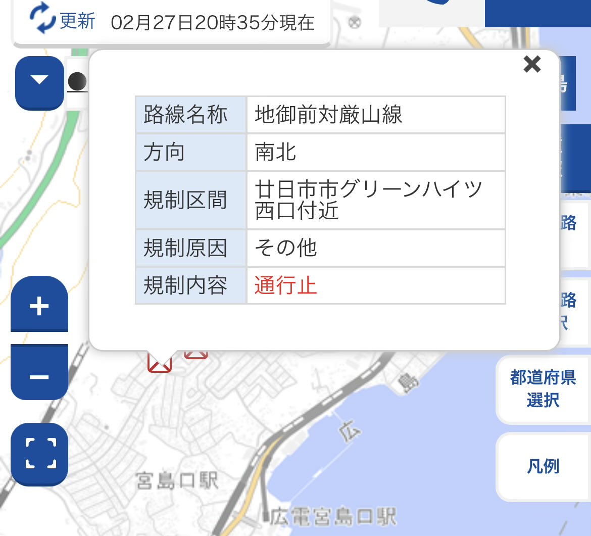 岐阜県中津川市山口付近 国道19号で路上障害物