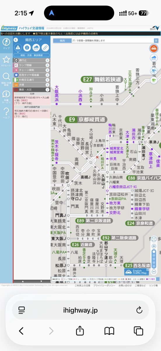 静岡県浜松市中央区 国道1号 浜名バイパス 篠原IC付近で多重事故