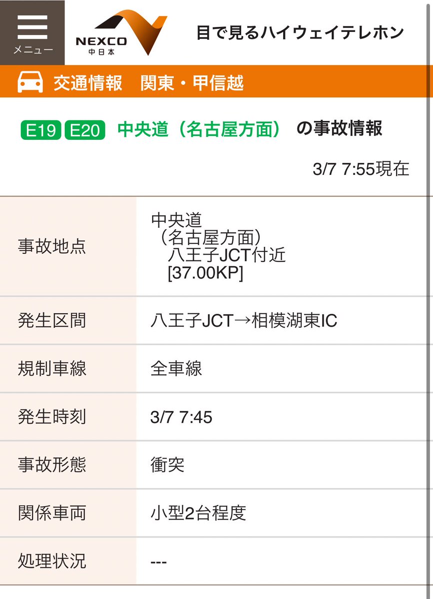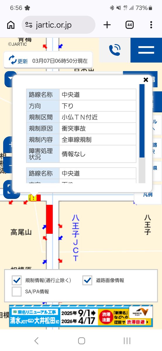 大阪府東大阪市 近畿自動車道 東大阪JCT~東大阪南IC間で多重事故