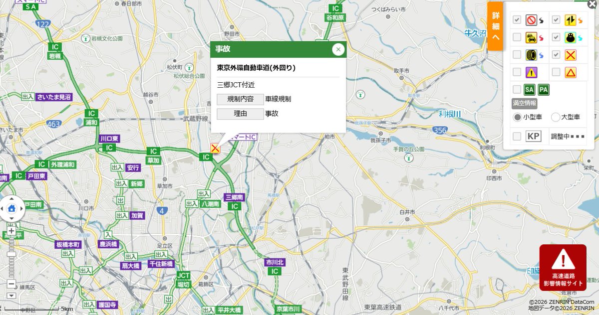 埼玉県越谷市 国道4号 草加バイパス 七左町二丁目交差点付近で故障車